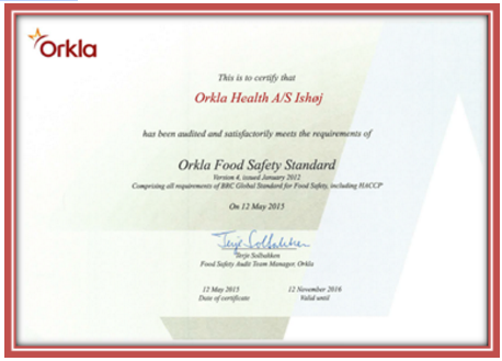 Orkla Health A/S - Công ty sở hữu thương hiệu Moller’s đã vinh dự được trao tặng giấy chứng nhận về “Tiêu chuẩn an toàn thực phẩm Orkla” - ORKLA FOOD SAFETY STANDARD lần thứ 4 năm 2015.