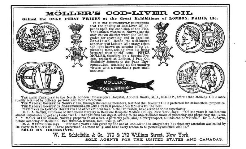 Từ năm 1868, Vua Charles XV - vua của Thuỵ Điển và Na Uy đã chính thức ghi nhận công lớn của Dược sĩ Peter Möller trong việc tìm ra các phương pháp chế biến và nâng cao chất lượng dầu gan cá tuyết Na Uy.