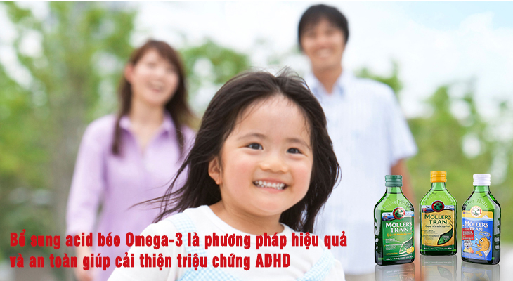 Như vậy, ngoài liệu pháp tâm lí và sử dụng thuốc thì việc kết hợp bổ sung acid béo Omega 3 là phương pháp hiệu quả, an toàn giúp trẻ mắc chứng ADHD có thể cải thiện các triệu chứng và tăng cường khả năng học tập, vui chơi như những trẻ bình thường. Thực phẩm bảo vệ sức khỏe Moller’s Tran là sản phẩm cung cấp Omega-3 với DHA&EPA tự nhiên với hàm lượng cao nhất thị trường hiện nay, được các bác sĩ đầu ngành tin tưởng và sử dụng không chỉ cho bệnh nhân ADHD mà còn với các trẻ bình thường, giúp trẻ thông minh hơn, khoẻ mạnh hơn. Lưu ý: Thực phẩm này không phải là thuốc, và không có tác dụng thay thế thuốc chữa bệnh.